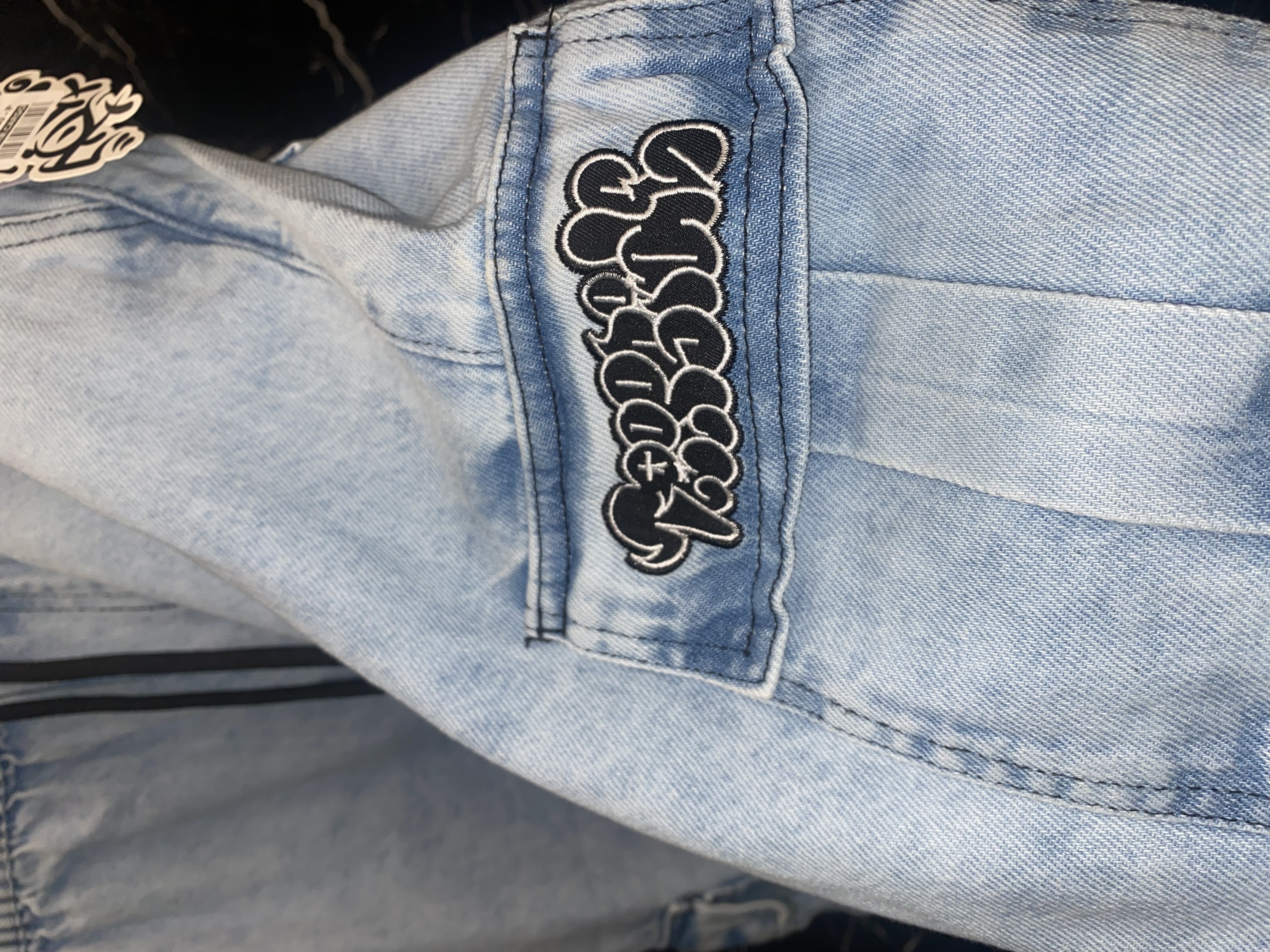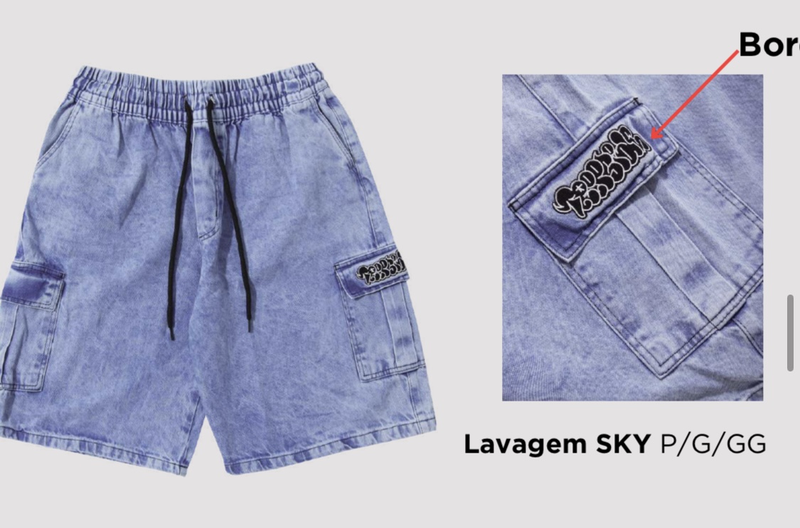 Bermuda cargo jeans mais encorpada, recorte baggy mais larga e abaixo do joelho