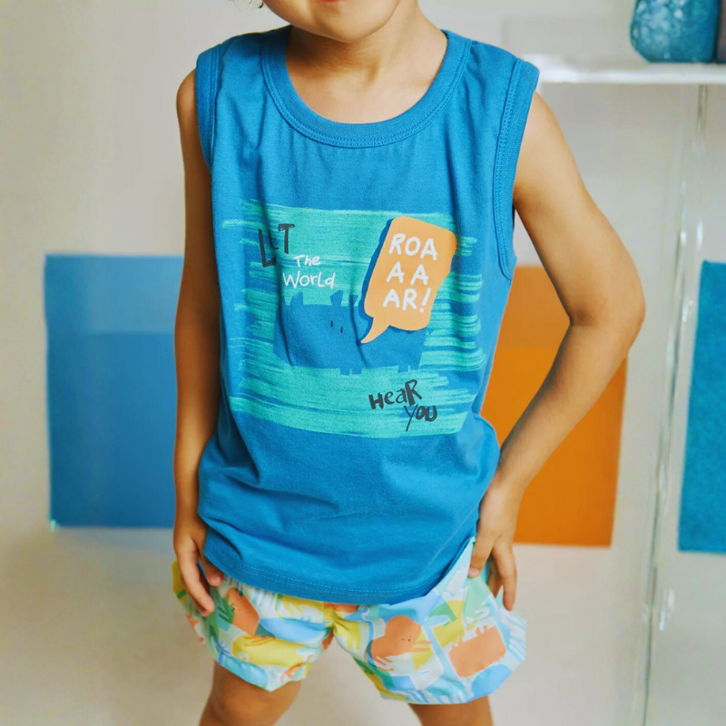 Com estampa alegre e tecido levinho, este conjunto infantil é perfeito para os dias mais quentes e passeios ao ar livre. Muito estilo e praticidade para as brincadeiras da garotada!