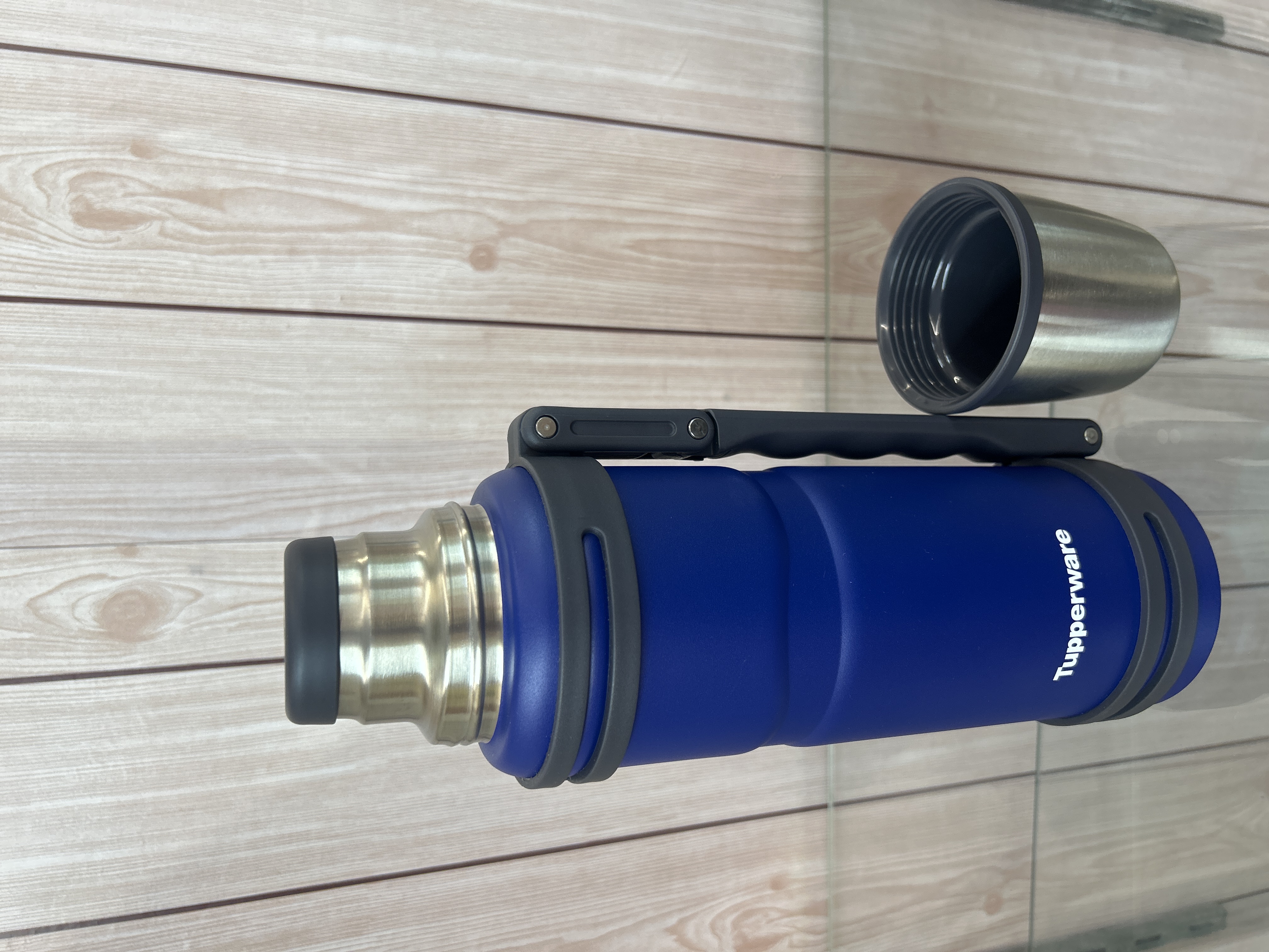 Garrafa Térmica em aço cirúrgico. 1.1 litros . Sua tampa serve de copo. Conserva quente 12 horas e gelado 18 horas .
